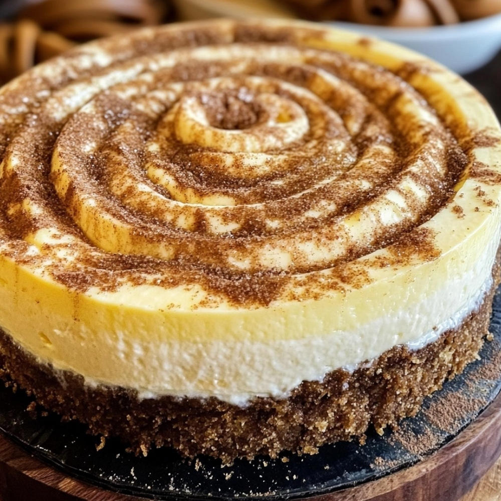 A rich, creamy baked cheesecake with a buttery graham cracker crust, cinnamon-brown sugar swirl, and sweet vanilla glaze. All the cozy flavor of cinnamon rolls in an elegant cheesecake—perfect for brunches, holidays, or special occasions.